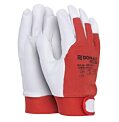 Rukavice šité z jemnej lícovej ovčiny v dlani, bielej bavlnenej tkaniny na chrbte a manžetou na suchý zips.Palm material: ovčia lícová kožaMateriál manžety: guma, velcroBack material: bavl