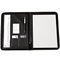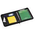 Konferenčná mapa so zipsom, vybavená písacou podložkou, vreckami na dokumenty a vizitky, úchytmi na písacie potreby a linajkovým poznámkovým blokom. V prevedení imitácie kože, úpra