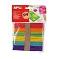 Drevené tyčinky, rozmer 114 x 10 mm, v rôznych farbách: červená, oranžová, zelená, žltá, modrá a fialová. Každé vrecko obsahuje 50 drevených tyčiniek. Veľmi odolné, ľahko sa lepia,