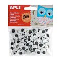 Čierne oválne nalepovacie krútiace oči. Rôzne veľkosti: 8 x 10 mm, 11 x 14 mm, 13 x 17 mm a 15 x 20 mm. Každé vrecúško obsahuje 100 očí. Oči s lepidlom na zadnej strane, pripravené na po
