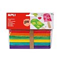 Drevené paličky, rozmer 150 x 18 mm, v rôznych farbách: červená, oranžová, zelená, žltá, modrá a fialová. Každé vrecko obsahuje 40 drevených paličiek. Veľmi odolné, ľahko sa lepia,