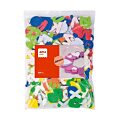 Koláž z pierok vo formáte MAXI, ideálna do škôl a dielní. Rôzne farby: biela, žltá, modrá, fialová, červená, ružová a zelená. Každé vrecko obsahuje 400 pierok rôznych veľkostí. Z