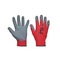 rukavice z kvalitnej pletenej polyesterovej tkaniny červenej farby, v úchopovej časti potiahnuté zdrsneným latexom čiernej farbyurčený pre montážne, skladové, strojárske, servisné, prepra