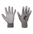 Pletené, bezšvové, nylonové rukavice, s tenkou vrstvou polyuretánu v dlani a na prstoch a pružnou manžetou.Materiál máčania: polyuretánMateriál rukavíc: polyamid (nylon), PletenýNormy:EN