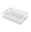 Plastový odkvapkávač na riad, ponúka priestor na odkvapkanie 10 tanierov. Kompaktný design, jednoduché skladovanie.Rozmery: 390×260×90 mm