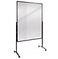 Predeľovacia tabuľa s priehľadným povrchom z plexiskla hrúbky 4 mm, popisovateľná popisovačmi na biele tabule. Nohy so štyrmi uzamykateľnými kolieskami. Hliníkový rám, nohy a pätky s č