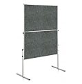 Predeľovacia tabuľa s lakovaným povrchom, popisovateľná popisovačmi na biele tabule. Nohy so štyrmi uzamykateľnými kolieskami. Hliníkový rám, nohy a pätky s čiernymi plastovými koncovka