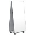 Predeľovacia tabuľa s bielym keramickým povrchom, popisovateľná popisovačmi na biele tabule. Nohy so štyrmi uzamykateľnými kolieskami. Hliníkový rám, nohy a pätky s čiernymi plastovými