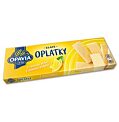 Jemné oblátky OPAVIA s citrónovou príchuťou. AlergényPŠENIČNÁ múka, laktóza (z MLIEKA), sušená srvátka (z MLIEKA), emulgátor (SÓJOVÝ lecitín). Meno alebo obchodné meno a a