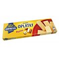 Jemné oblátky OPAVIA s lieskovoorieškovou príchuťou. Hmotnosť 146 g. AlergényPŠENIČNÁ múka, Sušená srvátka (z MLIEKA), Sušené odtučnené MLIEKO, SÓJOVÁ múka, LIESKOVÉ ORECHY
