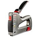 Veľká ručná nastreľovačka s vysokokvalitným plastovým krytom na univerzálne použitie, napr. na jednoduché upevnenie fólie, rýchle napnutie tkaniny do rámu a pod. Posuvný mechanizmus na