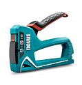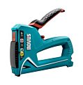 Malá ručná nastreľovačka s vysokokvalitným plastovým krytom na univerzálne použitie, napr. na rýchle napnutie tkaniny do rámu. Spodný plniaci zásobník s bezpečnostnou poistkou na ľahk
