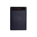 Podložka na písanie z recyklovaného plastu, vyrobená udržateľným a sociálne zodpovedným spôsobom. Zarážka papiera vľavo, integrovaný držiak na písacie potreby. Široká svorka so siln