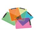 Písacia podložka A4 z priehľadného plastu v piatich neónových farbách s možnosťou zavesenia. Ľahko uchopiteľný silný plochý kovový klip s ochrannými plastovými rohmi. Rozmery 22,6 ×