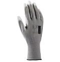 Pletené antistatické rukavice, materiál DELTAnocut® vysoko odolné vlákno a uhlíkové vlákno, dlaň a konce prstov povrstvené polyuretánom bez rozpúštadiel. Hrúbka úpletu 18.Normy:EN 388E