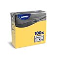 Jednovrstvové papierové servítky. Rozmery 33 × 33 cm. Väčšie balenie: 12 balení. V balení 100 kusov servítok. Farba žltá.