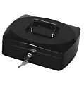 Uzamykateľná pokladnička s tvarovaným úchytom, plastovou priehradkou na mince a 2 kľúčami. Materiál pevná oceľ. Rozmery 155 × 75 × 120 mm. Farba čierna.