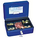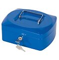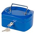 Uzamykateľná pokladnička s tvarovaným úchytom, plastovou priehradkou na mince a 2 kľúčami. Materiál pevná oceľ. Rozmery 155 × 75 × 120 mm. Farba modrá.
