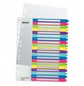 Rozraďovač formátu A4 vyrobený z tuhého polypropylénu. Jednotlivé stránky v rôznych farbách, multiperforácia na použitie rozraďovača v krúžkovom aj pákovom zakladači.Väčšie ba