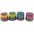 Dvojité plastové strúhadlo so zásobníkom na štandardné a farebné ceruzky. Dodávané v mixe farieb bez možnosti výberu konkrétnej farby. Väčšie balenie 40 ks.
