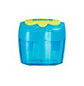 Dvojité plastové strúhadlo Flower, s dózou a dvomi otvormi na klasické a veľké ceruzky, farba modrá, balenie v blistri.