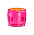 Dvojité plastové strúhadlo Flower,s dózou a dvomi otvormi na klasické a veľké ceruzky, farba ružová, balenie v blistri.