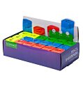 Plastové strúhadlo so zásobníkom na štandardné a farebné ceruzky. Dodávané v mixe farieb bez možnosti výberu konkrétnej farby. Väčšie balenie 40 ks.