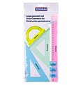 veľká sada: pravítko 30 cm, uhlomer, trojuholník 13 cm a trojuholník 18 cmmix farieb