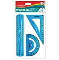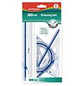 Sada geometrických pomôcok užitočná pre každého študenta. Ohybná, s mierkou podľa noriem. Stredná sada: pravítko 30 cm, uhlomer 10 cm, 2 x trojuholník 13 a 18 cm. Farba: mix farieb.