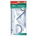 Rysovacia súprava trojuholník s ryskou 45°/177, trojuholník 60°/250, uhlomer 180°/100 s ryskou a pravítko 30 cm, číry plast.