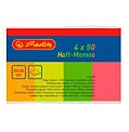 Papierové záložky, popisovateľné a snímateľné. Rozmery 20 × 50 mm. Dodávané v mixe 4 farieb po 50 lístkov. Farba ružová, zelená, žltá a oranžová.Certifikát FSC.