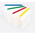 Záložky na sprehľadnenie obsahov závesných obalov v registroch, kartotékach, archívoch a pod. Znovunalepiteľné a popisovateľné. Rozmery záložky 50,8 × 38 mm. Dodávané v balení 4 farie