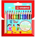 Trojhranné farbičky Trio majú ergonomický tvar pre pohodlné a uvoľnené držanie. Doporučený rozmer pre školákov 1. stupňa. Intenzívne farby, nelámavé tuhy. Priemer tuhy 4,2 mm. Balenie