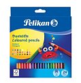 Trojhranné farbičky Pelikan, pevné, lakované, odolné voči zlomeniu. Priemer tuhy 3 mm. Balenie 24 ks.