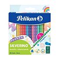 Farbičky Silverino trojhranné, tenké, so striebornými ryhami na všetkých troch stranách pre lepší úchop, priemer tuhy 4mm, s menovkou, 100% FSC drevo, balené v krabičke. Balenie 24 ks.