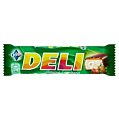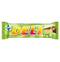 Tyčinka s pistáciovou príchuťou 60 % a karamelom 15 % máčaná v horkej čokoláde 25 %. Najlepšie je zostať nad vecou. A s tyčinkou DELI vo vrecku to ide skutočne ľahko. Táto šťavnatá