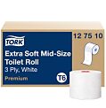 Dvojvrstvový biely toaletný papier z celulózy do zásobníkov Tork Mid-size, balený v kartóne po 27 ks. Dĺžka kotúča 100 m, priemer kotúča 13,2 cm.