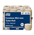 Dvojvrstvový biely toaletný papier z celulózy do zásobníkov Tork Mid-size, balený v kartóne po 27 ks. Dĺžka kotúča 100 m, priemer kotúča 13,2 cm.