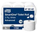 Papier toaletný Tork SmartOne Mini.Zo zásobníka vytiahnete iba 1 útržok a tým šetríte náklady.Dutinku z toaletného papiera jednoducho vyberiete vďaka systému SmartCore, stačí jednoducho