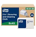 Tork utierky 2 v 1 na drhnutie a čistenie sú abrazívne a absorpčné utierky určené na efektívne upratovanie. Pri čistení odolných nečistôt, napríklad v kuchynskom prostredí, nepoškriabu