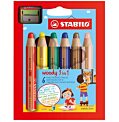 STABILO Woody 3 v 1 je multifunčkná farbička, vodovka a voskovka v jednom, ktorá vie kresliť na papier, na tmavý podklad, kartón, sklo, kov, drevo alebo trebárs aj na gumáky. Ozdobiť si drev