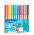 Popisovač vyrobený z PP s ventilačným bezpečnostným uzáverom a vláknovým hrotom odolným voči zatlačeniu. Šírka stopy 1,8 mm. Dodávaný v sade 12 farieb.Farba: sada 12 ksTyp hrotu: