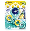Závesný plastový košík do WC s vymeniteľnou tuhou náplňou 3 v 1, ktorá likviduje prostredie na množenie baktérií, bráni tvorbe vodného kameňa a zanecháva dlhotrvajúcu sviežu vôňu.V