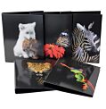 Zakladač krúžkový, 5 rôznych vzorov zvierat (2 z každého), vo vnútri s čirnobielou potlačou, pre formát DIN A4, 2 krúžky, priemer krúžku 25 mm, lesklý laminovaný papierový povrch.Roz