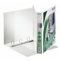 4-krúžkový celoplastový zakladač A4 s D-krúžkom, predným, zadným a chrbtovým priehľadným vreckom. Farba biela. Šírka chrbta 8 cm.